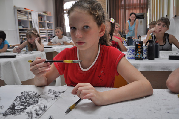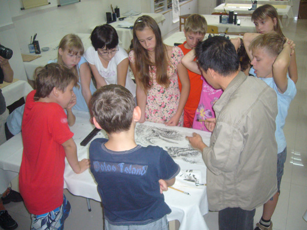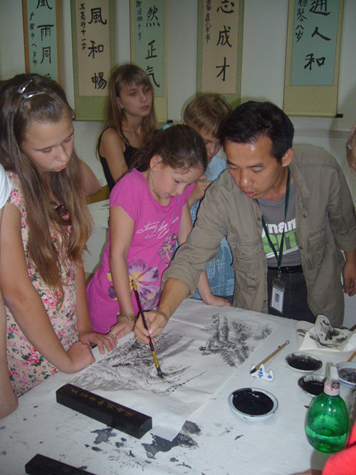 2011年10月下旬,我校来了一群仰慕中国文化的俄罗斯初中生。国际部校长给我委派了一项艰巨的任务,给这些学生上四堂国画课。我教了十几年美术,就是没有教过外国学生,没想到这下偶也要开洋荤了,哈哈。